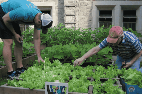 During the spring and summer months, our Green Team lovingly tends an organic garden on church property, run completely by volunteers, to grow fresh, organic produce that is then donated to the Mabelle Food Program within hours of picking.