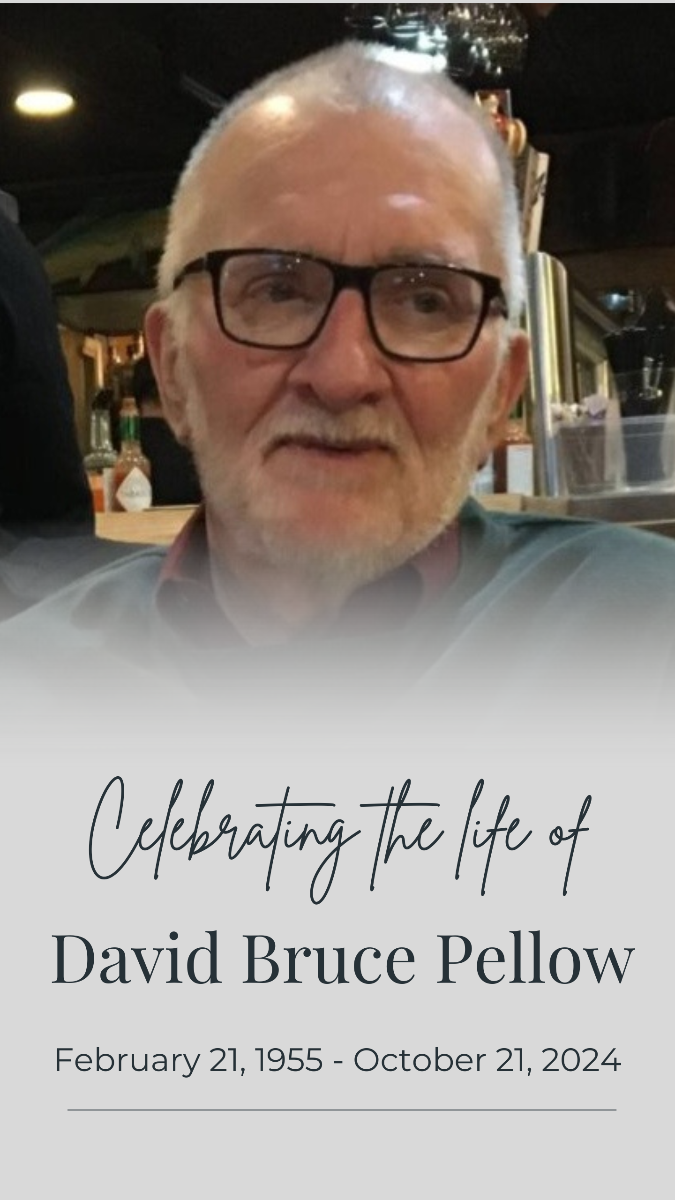 At the young age of 69, Dave passed peacefully with his daughter, Erin, holding his hand after a battle with cancer. Predeceased by his parents, Jim and Grace Pellow, he is survived by his brothers Brian and Scott (Cheryl). Dave’s greatest joy was being a Dad to his daughter, Erin, and an uncle to his nieces Koryna (Derek), Madelyn (Gareth), and Marijka, his nephew Devan (Alex), and his great-nephew Ben and great-nieces McKenna and Emma.