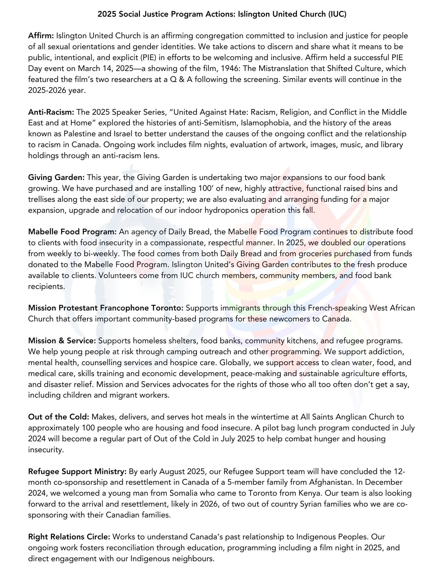 Support Islington United Church as an organization or one of our individual team members with a donation.